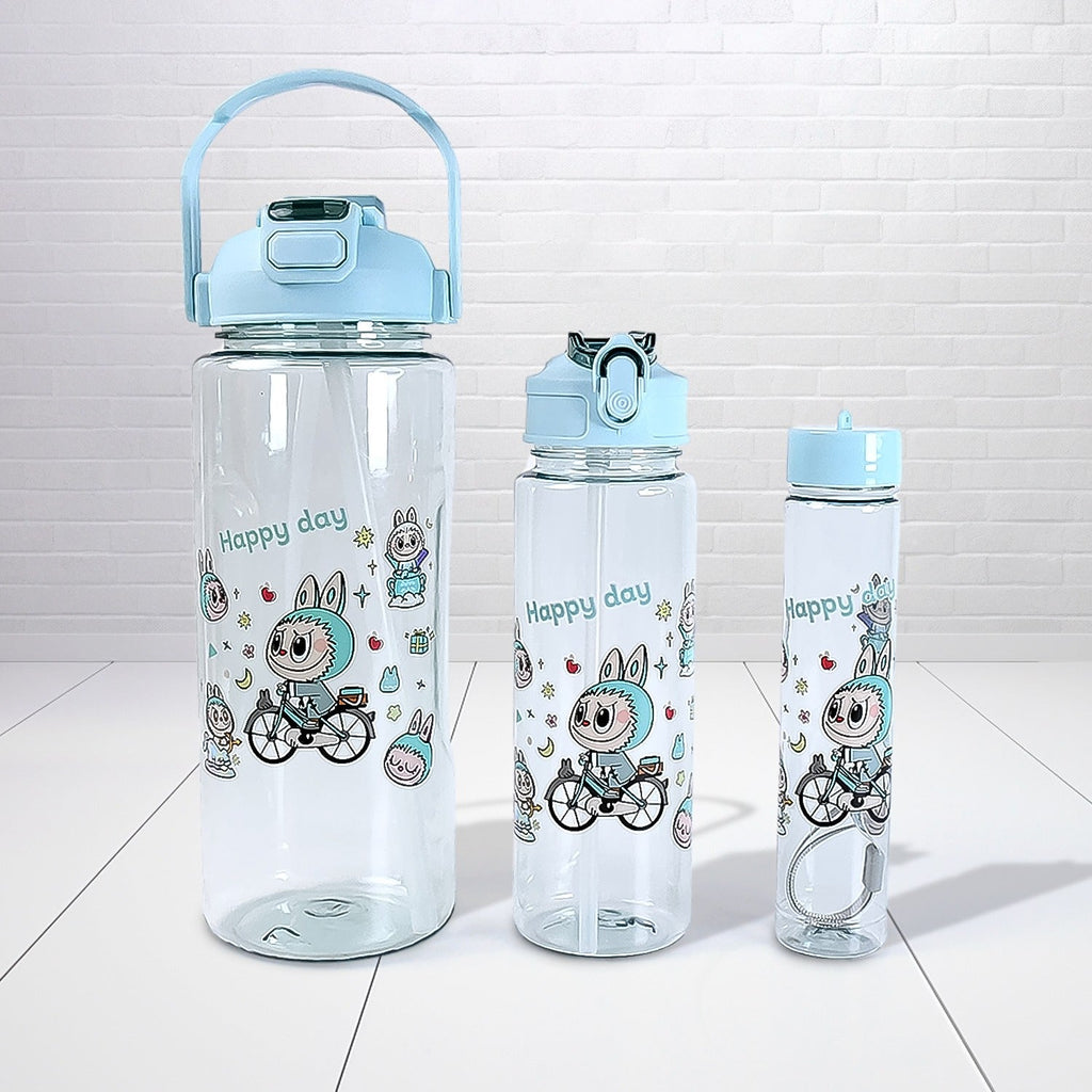3 in 1 Plastic water drinking bottle with handle straw, leakproof sipper bottle for gym office school sport travel (3 Pcs Set)